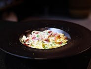W sosie śmietanowo-truflowym posypane świeżą trufla i serem grana padano